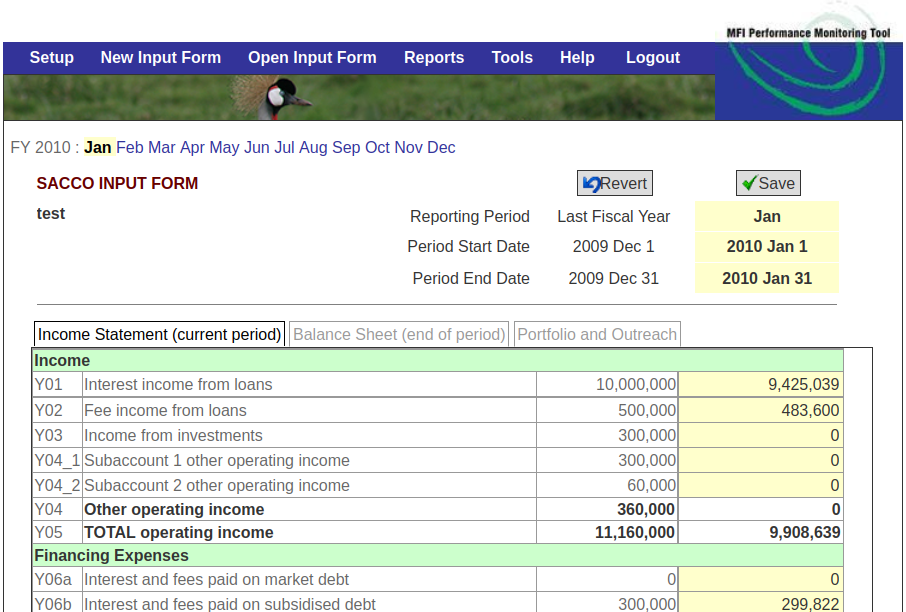 Microfiance Institutions (MFI) Performance Monitoring Tool (PMT).